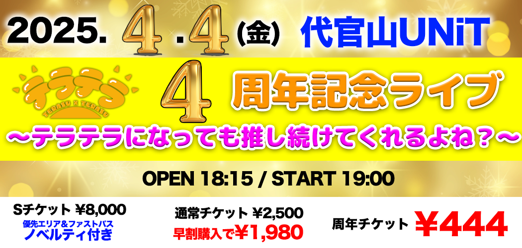 4月4日(金) テラテラ4周年記念LIVE 〜テラテラになっても推し続けてくれるよね?〜